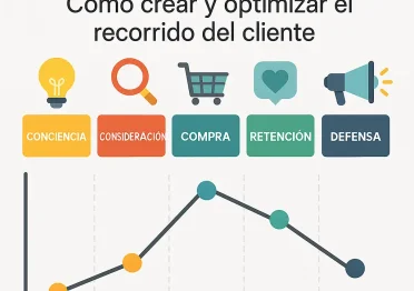 - Fases del recorrido: Un recorrido típico del cliente pasa por cinco fases esenciales: Conciencia, Consideración, Decisión, Compra y Postventa.
